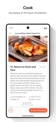 Anova Precision Oven کے ساتھ اپنے روزمرہ کے کھانا پکانے کے انداز کو نئی زندگی بخشیں۔ یہ ایپ خاص طور پر Anova Precision Oven کے لیے تیار کردہ مرحلہ وار ترکیبوں کا ایک وسیع ذخیرہ پیش کرتی ہے۔ اپنی پسندیدہ ڈش بنانے کے لیے، آپ محض ایک بٹن دبانے سے کھانا پکانا شروع کر سکتے ہیں اور وائی فائی سے منسلک اوون خود بخود تجویز کردہ درجہ حرارت اور سیٹنگز پر گرم ہو جائے گا۔ آپ ریموٹلی اپنے ٹائمرز پر نظر رکھ سکتے ہیں اور فوڈ پروب کے ذریعے کھانے کے اندرونی درجہ حرارت کی نگرانی کر سکتے ہیں۔ جب کسی اگلے مرحلے کے لیے آپ کی توجہ درکار ہوگی، تو ایپ آپ کو فوری طور پر مطلع کرے گی۔