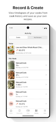 آپ کی پکائی گئی کھانوں کی تمام تاریخ خود بخود محفوظ ہو جاتی ہے، بالکل ایک ڈی وی آر کی طرح۔ اس سے آپ اپنی کامیاب ترکیبوں کو آسانی سے دوبارہ آزما سکتے ہیں یا انہیں Anova Precision Oven کمیونٹی کے ساتھ شیئر کر سکتے ہیں۔ کھانا پکانے کے دوران لچک کی ضرورت ہو تو، آپ فوراً ایڈجسٹمنٹ کر سکتے ہیں؛ اگر کھانا تیار ہے لیکن آپ نہیں، تو ہولڈنگ اسٹیج شامل کریں تاکہ کھانا اپنی بہترین حالت میں برقرار رہے۔ ایپ آپ کو ریئل ٹائم درجہ حرارت، سٹیم سیٹنگز اور فوڈ پروب کے ذریعے کھانے کا اندرونی درجہ حرارت بھی دکھاتی ہے، جس سے آپ کو ہر قدم پر مکمل کنٹرول حاصل ہوتا ہے۔